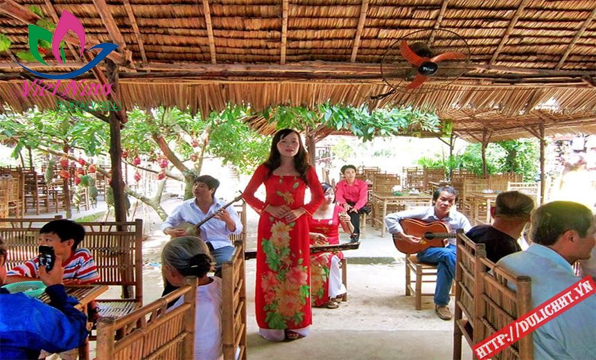 Đoàn du thuyền trên sông Tiền, ngồi xe ngựa, uống trà mật ong, nghe đờn ca tài tử. Tham gia tát mương bắt cá vui nhộn. Dùng cơm trưa tại nhà hàng.
